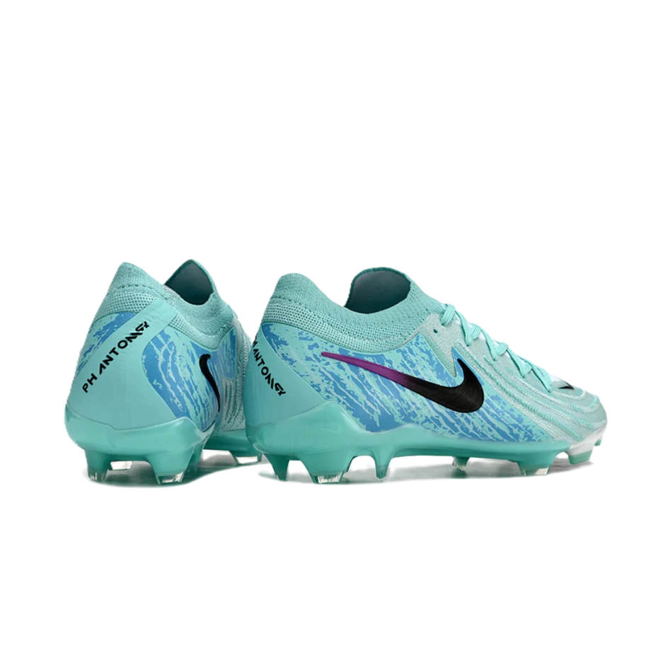 Los botines Nike Phantom Luna 2 Elite LV8 FG para fútbol, diseñados específicamente para terrenos firmes, presentan una combinación de colores vibrantes en jade, negro y púrpura que no solo resalta su estética, sino que también refleja la innovación y el estilo característico de la marca. Estos zapatos están elaborados con tecnología de vanguardia que proporciona un ajuste ceñido y cómodo, permitiendo a los jugadores moverse con agilidad y precisión en el campo. La parte superior está confeccionada con materiales ligeros y duraderos que favorecen el control del balón, mientras que la suela está diseñada para ofrecer una tracción óptima, lo que resulta esencial para realizar giros rápidos y cambios de dirección. Además, el diseño ergonómico de estos botines asegura que cada jugador pueda maximizar su rendimiento, combinando funcionalidad y estética en un solo producto.